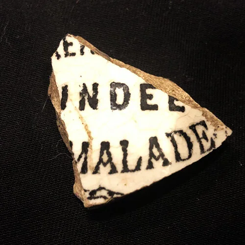 It’s part of a pot of marmalade dating back to around 1890. I found it on the back path to Dolbadarn Castle, so no buildings nearby, these days. The closest is the Royal Victoria Hotel.