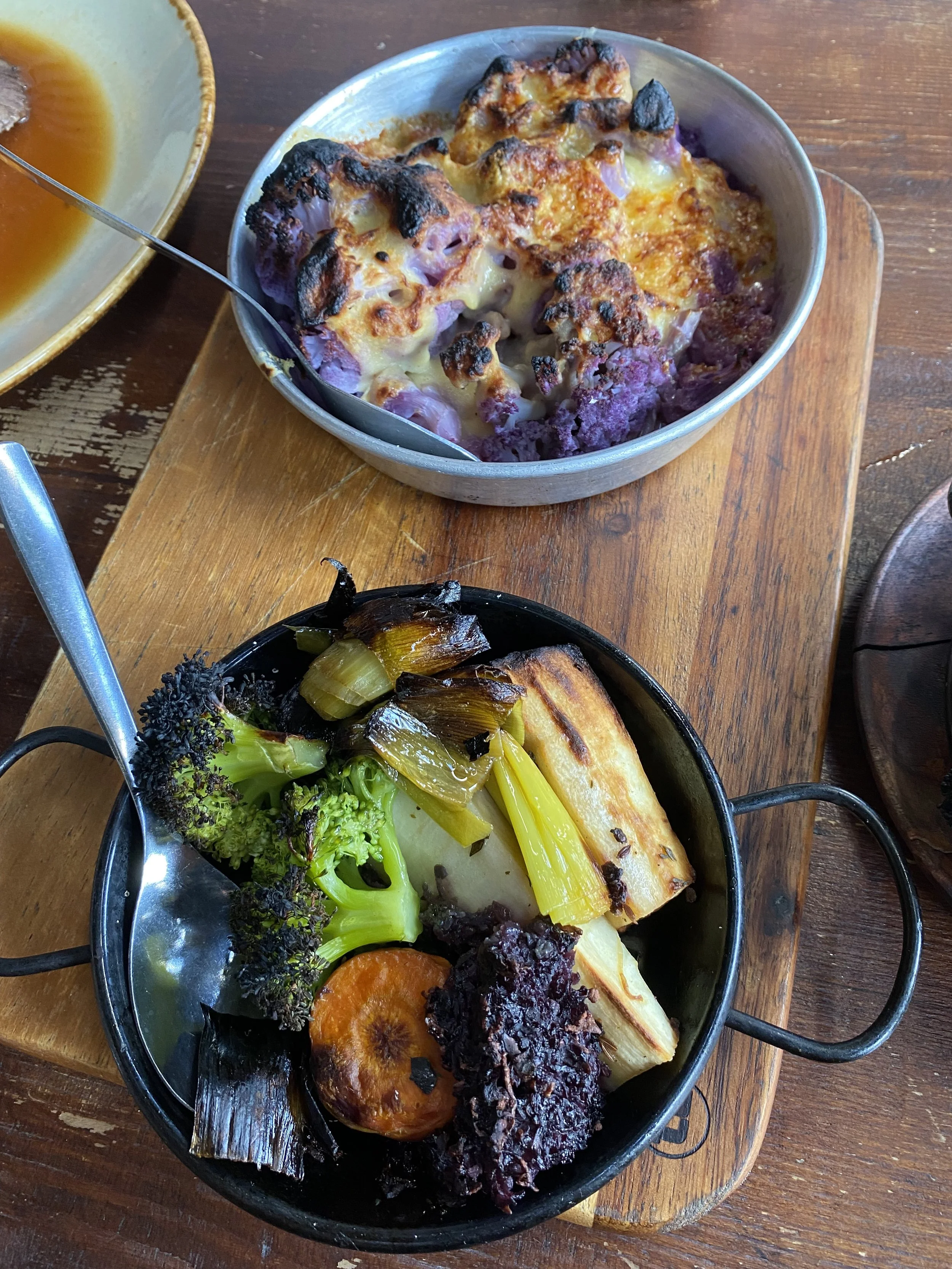 Oysters, trout, roast chicken (including pigs in blankets) & roast beef plus a Yorkshire Pud, veg & a cauliflower cheese to swoon to meant plates were quickly emptied.