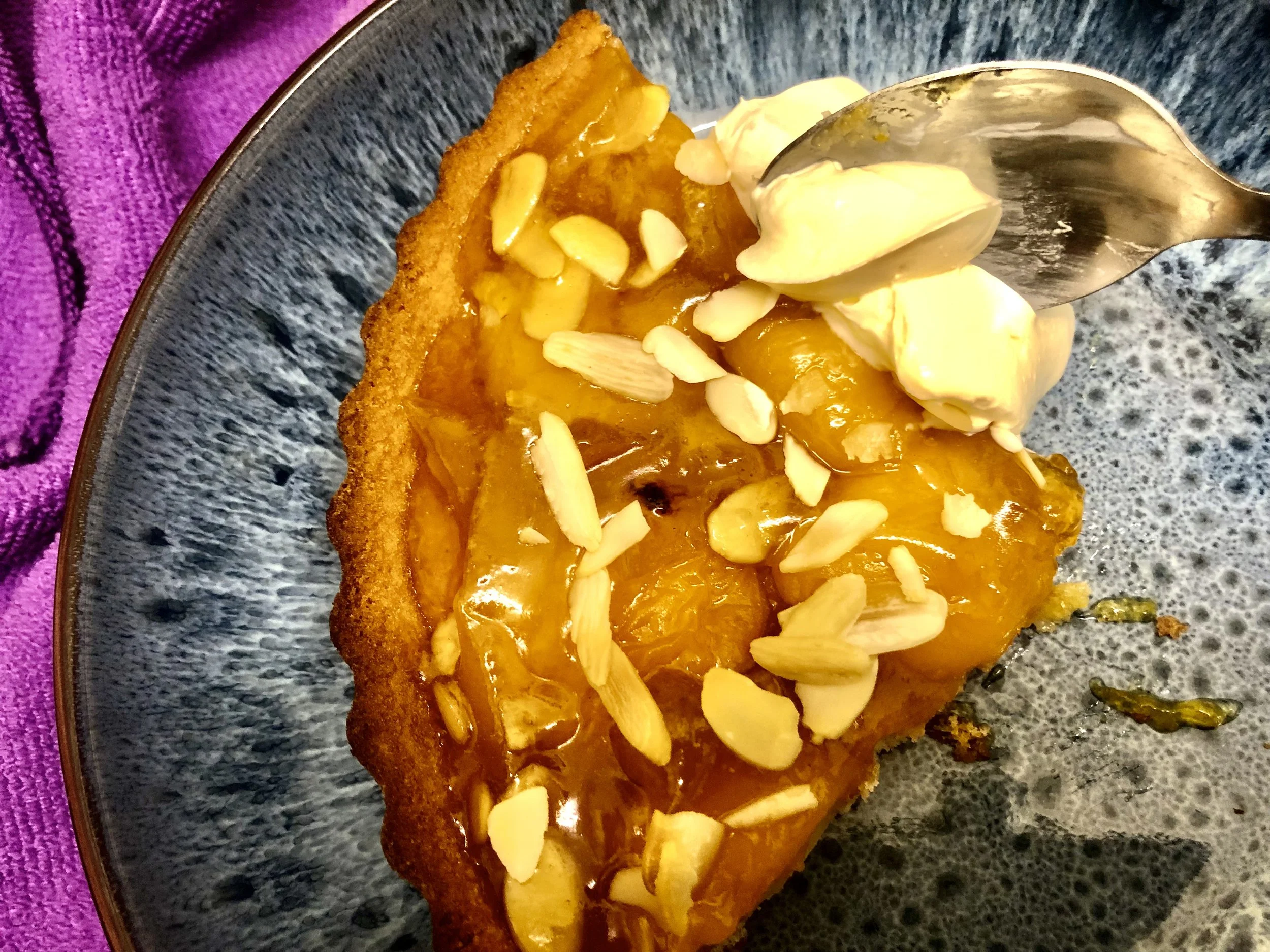 Then spooned over the glaze, filling in between the gaps. More almond flakes.