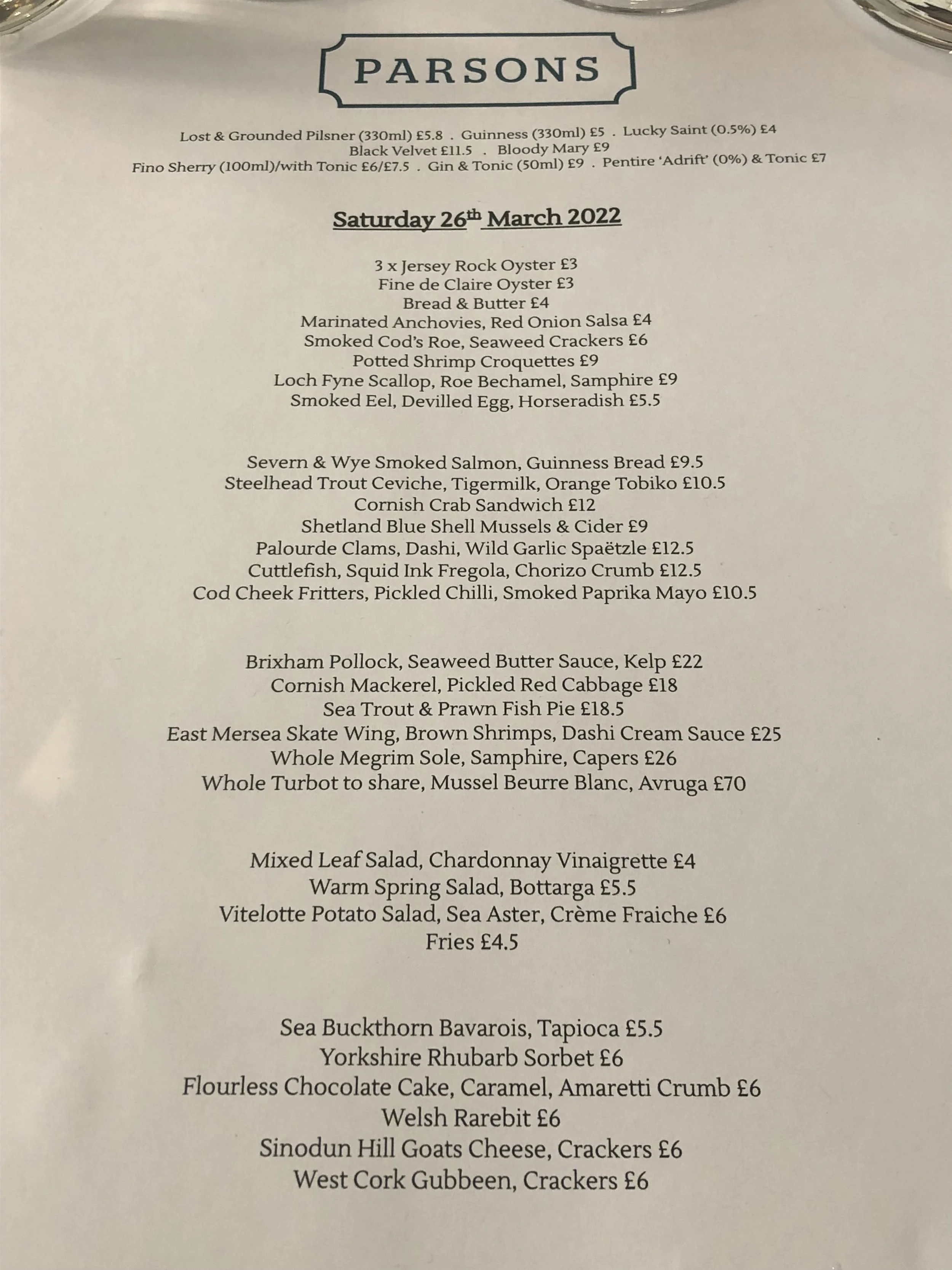 From the welcome, to being looked after from the moment we walked in till the moment we left, Parsons cannot be faulted.