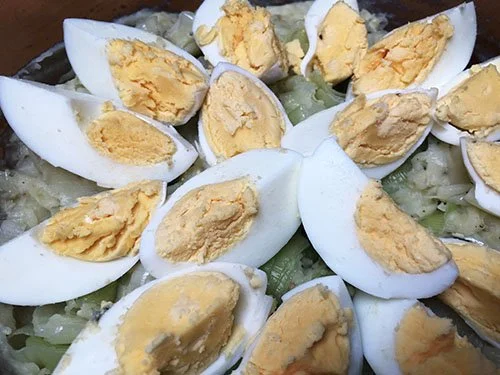 Myth? No - there’s far too much evidence for its existence, and the recipes for it are fairly standard - namely, cook up some Welsh chopped leeks, fried off in some butter. Parboil some potatoes and make some buttery mash. Mix the two together and create a base layer in an oven proof dish. Boil some eggs. Quarter then and lay them on top of the mash/leek layer.
